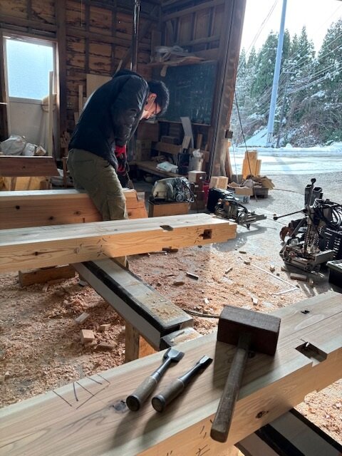 『キャンバスHouse』 工場では墨付けを終えた木材の刻み作業が着々と進んでいま...