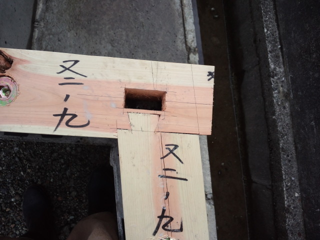 ヒノキ4寸角 継手はカマ継ぎ!!