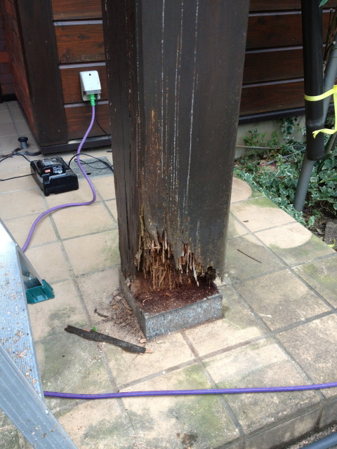 面白い仕事をしてきたので紹介します 玄関ポーチ柱がシロアリに食べられ 根本から1...