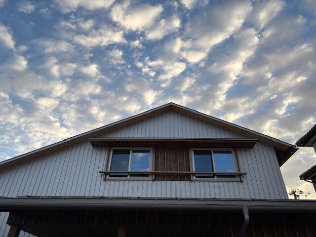 『ばんざいや』 屋根工事に外壁工事を終え 足場解体前の最終確認を行いました。 棟...